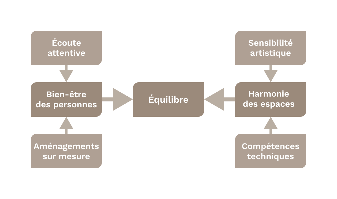 Ma mission est de soutenir un équilibre de vie ou de travail, en conciliant le bien-être des habitants ou des collaborateurs et l’harmonie des espaces.
