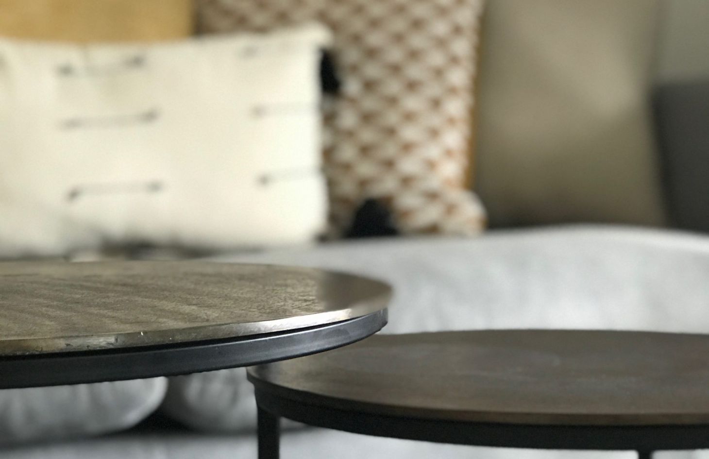 Avant de nous rencontrer, nos clients avaient fait des choix de base qu’ils regrettaient. Par soucis d’économie, nous avons donc intégré ces choix dans le projet. Ils désiraient se débarrasser du canapé récemment acheté, mais grâce à quelques coussins jetés pêle-mêle, choisis dans des tons chauds et des matières naturelles, le canapé retrouva bonne mine et, d’un objet délaissé, devint fort apprécié durant les soirées hivernales.