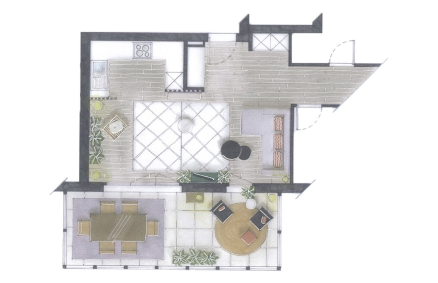 Par manque de temps, même s’ils savaient ce qu’ils désiraient, ils n’ont pas eu le courage de se lancer seuls dans leur projet d’aménagement et durant deux années, ils vécurent sans oser aménager leur intérieur. Grâce à nos services et à notre écoute attentive, leur rêve devint réalité. En leur présentant nos premières esquisses, ils réussirent à se projeter totalement dans leur futur « chez eux » et en toute confiance nous pûmes les accompagner dans les magasins de proximité où nous avions au préalable fait une sélection de meubles. Ils purent ainsi voir, toucher et essayer chaque meuble avant de les acheter.